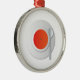 Uma taça redonda de sopa de tomate com colher prateada sobre um fundo branco