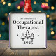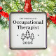 Primeiro Natal como ornamento de terapeuta ocupacional para um novo emprego em cuidados de saúde ou para uma formatura. Decoração elegante do feriado em branco com letras negras. Apresentando árvores e estrelas de Natal.