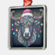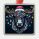 Esta ilustração vibrante mostra a cabeça de uma vaca enfeitada com padrões intrincados e decorações festivas. Seus chifres se transformam em ramos giratórios de sagrado e bagas, revestidos com um chapéu fofo de Santa. Os ornamentos coloridos balançam em seu rosto, que tem uma expressão calma, quase real. A trabalho de arte combina o realismo com um estilo psíquico e caprichoso, criando uma imagem cativante perfeita para a época de férias.