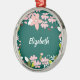 Ornamento De Metal Verde com Flores Rosa Personalizadas