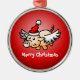 O Porco de Natal Voador num Ornamento Metálico. Personalizar texto.