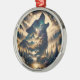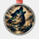 Ornamento De Metal Wolf Howling na lua numa noite nublada