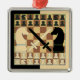 Um tabuleiro de xadrez com partes de xadrez projeta, mais cavaleiros de oposição maiores e espadas cruzadas.