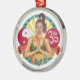 Arte original de Sandra Gale em um ornamento redondo exibindo um design inspirador com o sinal para ohm, yin-yang, e outros com uma bela mulher meditando. Uma design única e colorida de espiritualidade que é perfeita para todos.