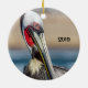 Huntington Beach, Califórnia com o píer e um morador California Brown Pelican. Altere a data para a data atual da visita.