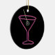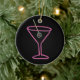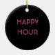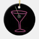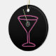 Feito para olhar como um sinal do bar do vintage, o design retro neste ornamento caracteriza uma azeitona pimento-enchida néon em um palito que flutua em um vidro de néon cor-de-rosa de martini. Na parte de trás do ornamento a frase "HAPPY HOUR" é soletrada para fora no texto aberto no mesmo rosa. O texto customizável pode facilmente ser mudado para dizer o que quer que você gosta ou pode ser suprimido completamente. De minha imagem digital criada do original.