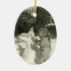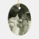 O ornamento de neve tem uma antiga foto de Julia tocando na neve, Douglas Morrill melhorou essa foto.