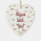 Este ornamento foi originalmente criado como presente de Natal para minha sobrinha e seu noivo. Pode ser personalizado com os nomes do casal feliz e a data do noivado. Ele também apresenta um design que captura a exuberância do momento! O esquema de cores é uma combinação sofisticada de burgundy, rosa e ouro para representar amor e entusiasmo, ou personalizá-lo completamente para realmente torná-lo seu!