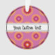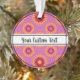 Enfeites de natal com um padrão de flores geométricas sem descontinuidades nas cores da bandeira do orgulho lésbico - rosa, branca e design de orgulho lésbico laranja em fundo rosa; com um campo de texto editável para seu nome ou mensagem; uma forma excelente de decorar sua árvore de Natal: D
