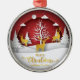 Elegante ornamento de metal de Natal com um fundo festivo de arte em papel com renas, árvores de neve e uma mensagem de "Feliz Natal e Feliz ano novo". Um eterno para sua decoração de feriado ou como um presente sazonal.