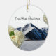 Compartilhar seu primeiro Natal com alguém é tão especial. Aqui está uma bela paisagem de montanha de neve com flores brancas acentuando-a. Personalizar conforme desejado.