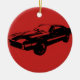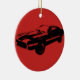 Enfeite cerâmico com silhueta de músculo negro sobre fundo vermelho