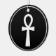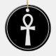 Elevem sua decoração de feriado com este sofisticado Enfeites de natal preto redondo, elegantemente adornada com um símbolo de tornozelo egípcio branco e nítido. O fundo preto destaca o tornozelo eterno, um símbolo de vida e proteção, criando um sotaque marcante e significativo para sua árvore. Este ornamento combina a design moderna com o simbolismo antigo, fazer que seja uma escolha perfeita para aqueles que apreciam decorações únicas e culturalmente ricas. Dar como presente a um egiptólogo ou a alguém que goste de antiguidades e hieróglifos!