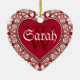 texto personalizável forma cardíaca ornamento cerâmico : Padrão tribal de energia vermelha e branca com espaço central para seu próprio texto em ambos os lados deste ornamento enforcado. Ideia de ornamento: faça seu próprio cabide de porta personalizado / nome do quarto: segure no cabo curto no meio da sua porta. Adequado também como presente personalizado para ocasiões e eventos especiais: Graduação, Noivados, favores de casamento, Conquistas e prêmios, presentes de Bridesmaid ou excelente de adicionar sua citação ou afirmações favoritas e pendurá-la para que você seja lembrado diariamente! Como minhas designs e Arte?