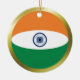 Ambos os lados deste ornamento exibem a bandeira da Índia se transformando em um círculo com uma borda de ouro. Simples decoração indiana para sua casa.