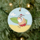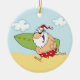 Este Enfeites de natal bonito mostra o Papai Noel como um surfboard e correndo na praia até o oceano. Este ornamento pareceria um excelente pendurado na sua árvore de Natal, no seu espelho retrovisor, ou como uma ventoinha de teto. Adicione um cabo mais longo e vista-o como um pingente. Faz um presente de excelente ou um gatilho de estoque. Este ornamento tem impressão do lado do solteiro, mas também está disponível com impressão do lado duplo em ornamentos cerâmicos.