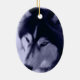 Foto pintada do rosto de um Husky Siberiano é mostrada em ambos os lados deste lindo ornamento.