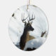 O veado branco com chifres contra a neve, faz um ornamento legal para amantes da natureza!