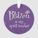 "Blitzen é minha rena espirituosa" em branco na frente com uma garrafa de álcool ilustrada em fundo roxo. Nas costas, uma garrafa de álcool maior, espaço para o primeiro nome e ano.