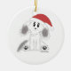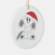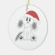 Cão de filhote de cachorro desalinhado do Natal com o ornamento do chapéu de Papai Noel