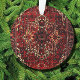 Padrão de tapete oriental em vermelho escuro e creme - uma imagem antiga IMPRESSA neste clássico ornamento do círculo acrílico - um design eterno com detalhes intrincados de um livro antigo - alterou-se e colocou em numerosos produtos por Alma Wad. Excelente opção para qualquer pessoa que queira adicionar alguma cor e calor à sua árvore de Natal.