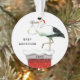 Doce design de aquarela com cegos em um chapéu de Papai Noel em cima de uma chaminé, prestes a dar um bebê. Editar texto para personalizar para ser mãe e pai a ser.