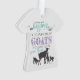 Que maneira única perfeita de surpreender alguém com uma cabra no Natal - tirar uma foto da nova cabra para o fundo do ornamento, pendurar este ornamento na árvore com o nome do receptor e quando ele o vir e gritar com felicidade eles podem correr para o celeiro de sua nova cabra! Você também pode mudar a cor do texto - nós escolhemos teal e roxo mas nos sentimos livres para mudá-lo. Use a opção personalizar mais e localize a imagem à esquerda, realce-a e, na coluna direita, você verá opções de cor. Outro original goatLady © GetYerGoat™