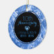 Preto com tons azuis metálicos elegantes e damas florais de vintage e coração duplo, enfeites de natal do 50º aniversário de casamento. Texto personalizável