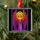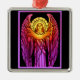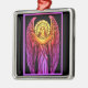 Um dramático anjo de vidro manchado, em cores de joias vibrantes com um halo ouro, anunciando o advento do Natal.