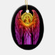 Um dramático anjo de vidro manchado, em cores de joias vibrantes com um halo ouro, anunciando o advento do Natal.