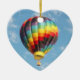 Ornamento brilhante com a foto do balão de ar quente multi-colorido contra o céu azul.