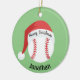 Ornamento do Basball Santa Hat com cor e texto de fundo personalizáveis, frente e verso.