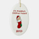 Você pode personalizar a parte traseira e para mudar a data ornamento da lembrança do Natal deste bebê bonito no primeiro que caracteriza um bebê em um texto vermelho do estilo da meia e do miúdo do Natal que me leia "está presente do Natal da avó!"