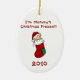 Você pode personalizar a parte traseira e para mudar a data ornamento da lembrança do Natal deste bebê bonito no primeiro que caracteriza um bebê em um texto vermelho do estilo da meia e do miúdo do Natal que me leia "está presente do Natal da mamã!"