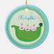 Ornamento da ervilha doce" do menino da objectiva tripla ". 3 bebés bonitos pequenos que picam suas cabeças acima fora de um vagem de ervilha. têm ondas pequenas bonitos do bebê. a palavra "é objectivas triplas!" são escritos na pia batismal encaracolado acima. isto é imprimido em um fundo verde com uma beira azul e verde. grande presente para uma mamã nova ou um chá de fraldas! Isto é imprimido em ambos os lados.
