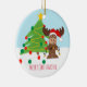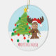 Um personagem encantador desenhou a cena de Natal com um charmoso Moose a decorar a sua árvore.