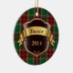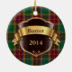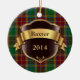 Ornamento cerâmico da xadrez colorida, com o teste padrão vermelho, marrom, azul, amarelo, e verde tradicional da xadrez de tartan de Baxter do clã, como um fundo. Os gráficos de um protetor marrom e goldtone gostam da chapa, têm o texto amarelo e marrom dourado feito sob encomenda pronto para personalizar. Grande ornamento de vista da herança de família. Faz um grande presente ornament e a decoração para outros usos em torno da casa.