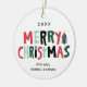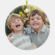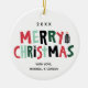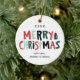 Este ornamento moderno e fresco da foto do feriado caracteriza a mão ilustrou a tipografia nas letras de bloco lunáticas que dizem o "Feliz Natal", uma árvore de Natal do estilo do corte da madeira decorada com uma estrela brilhante na parte superior. Estes enfeites de natal da herança de família caracterizam uma pálete à moda da cor do feriado e são acentuados com roteiro e uma pia batismal do serif de san para seus cumprimento e nomes de família. O reverso ou a parte traseira do ornamento são lugar perfeito para que essa foto de família comemore a época natalícia com estilo!