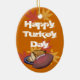 O dia feliz de Turquia e de Turquia do futebol Ornament características nossos trabalhos de arte do divertimento criados por Traci Van Wagoner de um peru suculento e saboroso em uma bandeja com um futebol e cai as folhas atrás. Na parte traseira diz, "dia feliz de Turquia". Compartilhe dos obrigados e do divertimento do feriado com seus amigos e família e decore sua casa com nosso ornamento original do dia da acção de graças.
