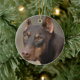 Este ornamento contem um doberman muito do brilho pelo nome de Chancee Mae. O vermelho e a foto da oxidação seriam um grande presente para todo o amante do doberman em sua lista do feriado. Faz um grande presente para em qualquer altura que do ano, (não apenas os feriados). Os artigos em Zazzle são mais ou menos CARVALHO e não podem ser encontrados em lojas….