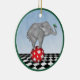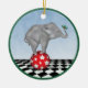O elefante surreal do bebê equilibra em uma bola do circo ao guardarar um sprig do azevinho.