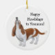 Design original das belas artes de um cão de Basset do urro neste Natal bonito ou no outro ornamento do feriado para amantes do cão pelo desenhista Carolyn McFann dos dois gatos do estúdio de ronrom da ornamentação e.