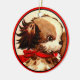 Design do vintage. Filhote de cachorro pequeno doce do Spaniel com arco vermelho do Natal.