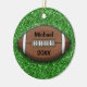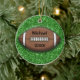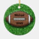 Um ornamento perfeito para o amante, o treinador ou o jogador do futebol. Ornamento cerâmico com futebol no fundo da grama. parte traseira. Personalize o ornamento para um presente ou uma lembrança especial.