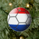 A bandeira de Países Baixos gravou através de uma bola de futebol em um ornamento cerâmico frente e verso.
