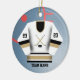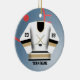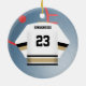 Personalize este ornamento do jérsei do jogador de hóquei com seus número e nome da equipe na parte dianteira e na sua parte traseira do nome e do número sobre. Faz um grande presente para seu jogador de hóquei favorito ou igualmente faz um grande presente da equipe. Excelente para o segundo grau e presentes internos da liga de hóquei!