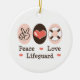 Um símbolo de paz, um coração e um lifeguard soam no marrom cor-de-rosa e escuro em t-shirt bonitos, em camisetas, em roupa, em botões, em etiquetas, em artigos de papelaria e em mais presentes para um lifeguard e sua família. Clique sobre a seguinte relação para ver todo nosso Chrissy bonito H.