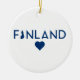Este ornamento apresenta as cores nacionais da Finlândia, com um mapa do país e um dentro de coração! A design é impressa em um lado do ornamento.