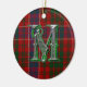 Ornamentado monograma com ornamento M, com a tradicional xadrez de tartan do clã MacRae vermelha, azul, verde e branca como fundo. ornamento familiar de herança de excelente. Faz um enfeite e decoração de presente de excelente para outros usos na casa.