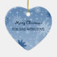 Ornamento do pai do Feliz Natal customizável com sua própria foto de família no teste padrão festivo azul e branco elegante dos flocos de neve. Um presente maravilhoso do Natal para o pai esta época natalícia.